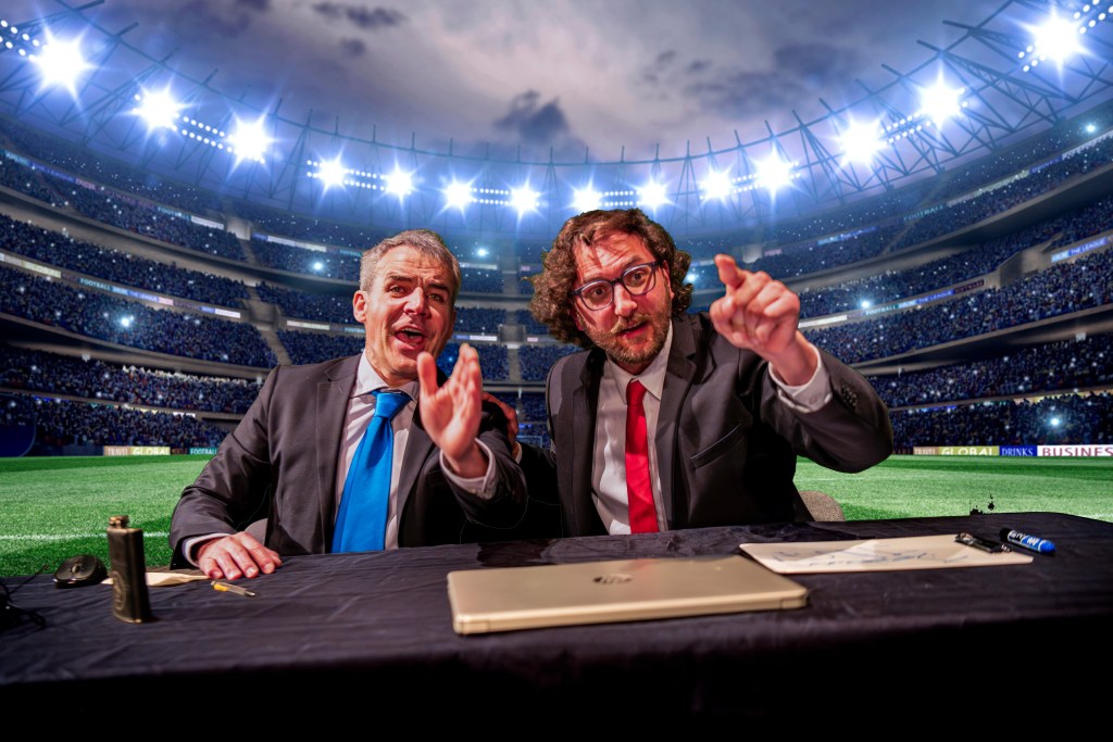 Image 3: Tim (Michael Kamras) and Steve (Guido G. Furlani) point towards the camera